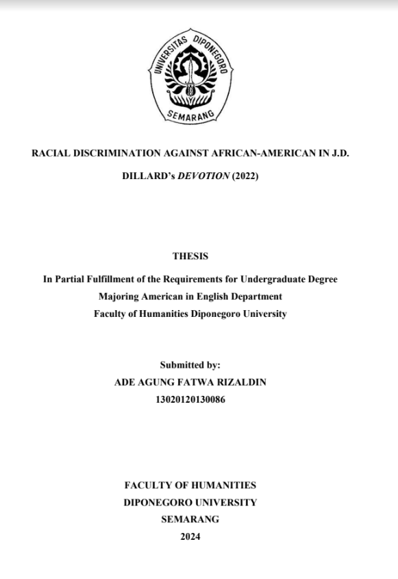 RIZALDIN, ADE AGUNG FATWA (2024) RACIAL DISCRIMINATION AGAINST AFRICAN-AMERICAN IN J.D. DILLARD’s DEVOTION (2022). Undergraduate thesis, Diponegoro University.