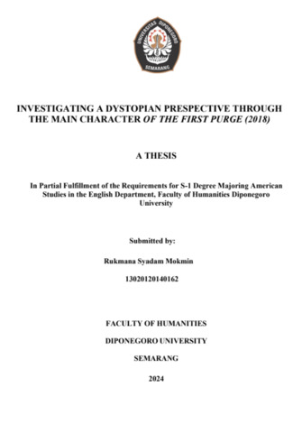 Mokmin, Rukmana Syadam (2024) INVESTIGATING A DYSTOPIAN PRESPECTIVE THROUGH THE MAIN CHARACTER OF THE FIRST PURGE (2018). Undergraduate thesis, Diponegoro University.