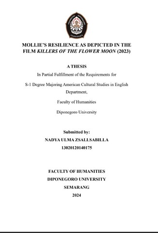 ZSALLSABILLA, NADYA ULMA (2024) MOLLIE’S RESILIENCE AS DEPICTED IN THE FILM KILLERS OF THE FLOWER MOON (2023). Undergraduate thesis, Diponegoro University.