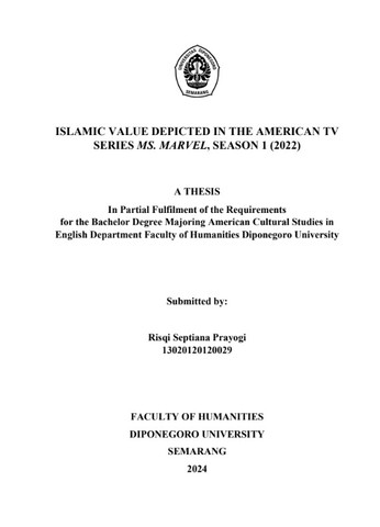 Prayogi, Risqi Septiana (2024) ISLAMIC VALUE DEPICTED IN THE AMERICAN TV SERIES MS. MARVEL, SEASON 1 (2022). Undergraduate thesis, Diponegoro University.