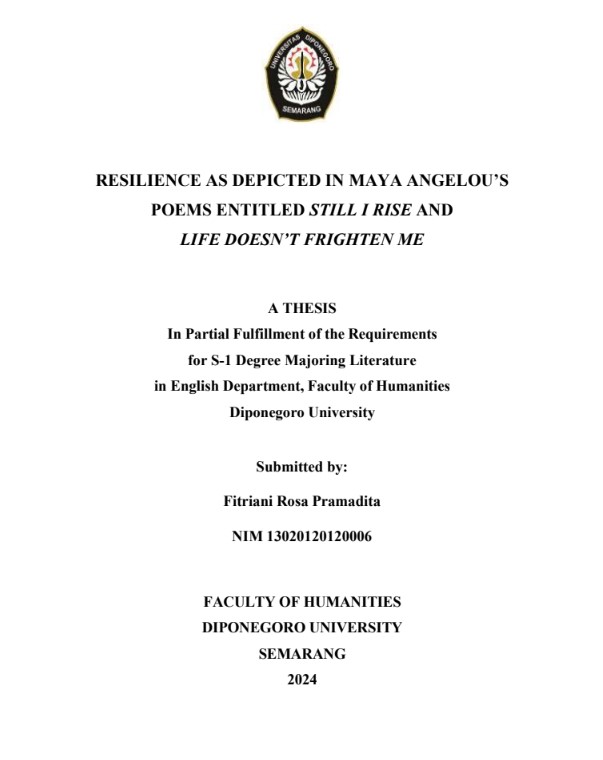 Pramadita, Fitriani Rosa (2024) RESILIENCE AS DEPICTED IN MAYA ANGELOU’S POEMS ENTITLED STILL I RISE AND LIFE DOESN’T FRIGHTEN ME. Undergraduate thesis, Diponegoro University.