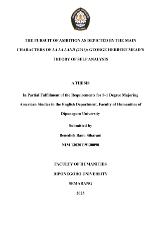 Sibarani, Benedick Banu (2025) THE PURSUIT OF AMBITION AS DEPICTED BY THE MAIN CHARACTERS OF LA LA LAND (2016): GEORGE HERBERT MEAD’S THEORY OF SELF ANALYSIS. Undergraduate thesis, Diponegoro University.