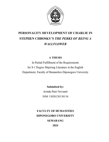 Novianti, Arinda Putri (2025) PERSONALITY DEVELOPMENT OF CHARLIE IN STEPHEN CHBOSKY’S THE PERKS OF BEING A WALLFLOWER. Undergraduate thesis, Diponegoro University.