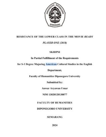 Umar, Anwar Aryawan (2025) RESISTANCE OF THE LOWER CLASS IN THE MOVIE READY PLAYER ONE (2018). Undergraduate thesis, Diponegoro University.