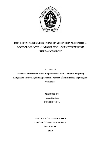 Fazillah, Intan (2025) Impoliteness Strategies in Conversational Humor: A Sociopragmatic Analysis of Family Guy's Episode “Turban Cowboy”. Undergraduate thesis, Diponegoro University.