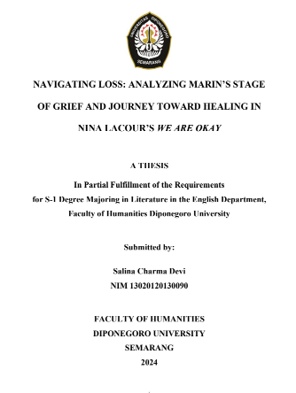Devi, Salina Charma (2025) NAVIGATING LOSS: ANALYZING MARIN’S STAGE OF GRIEF AND JOURNEY TOWARD HEALING IN NINA LACOUR’S WE ARE OKAY. Undergraduate thesis, Diponegoro University.