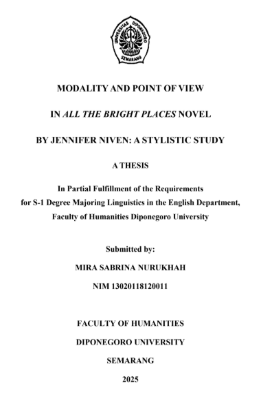 NURUKHAH, MIRA SABRINA (2025) MODALITY AND POINT OF VIEW IN ALL THE BRIGHT PLACES NOVEL BY JENNIFER NIVEN: A STYLISTIC STUDY. Undergraduate thesis, Diponegoro University.
