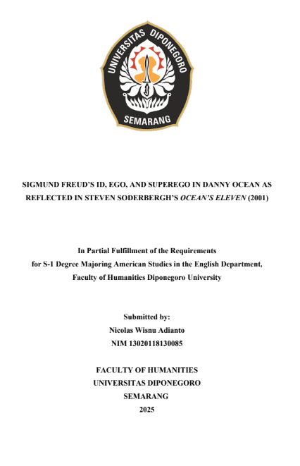 Adianto, Nicolas Wisnu (2025) SIGMUND FREUD’S ID, EGO, AND SUPEREGO IN DANNY OCEAN AS REFLECTED IN STEVEN SODERBERGH’S OCEAN’S ELEVEN (2001). Undergraduate thesis, Diponegoro University.