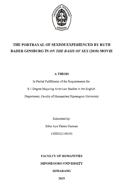 Dasman, Edna Ayu Fahira (2025) THE PORTRAYAL OF SEXISM EXPERIENCED BY RUTH BADER GINSBURG IN ON THE BASIS OF SEX (2018) MOVIE. Undergraduate thesis, Diponegoro University.