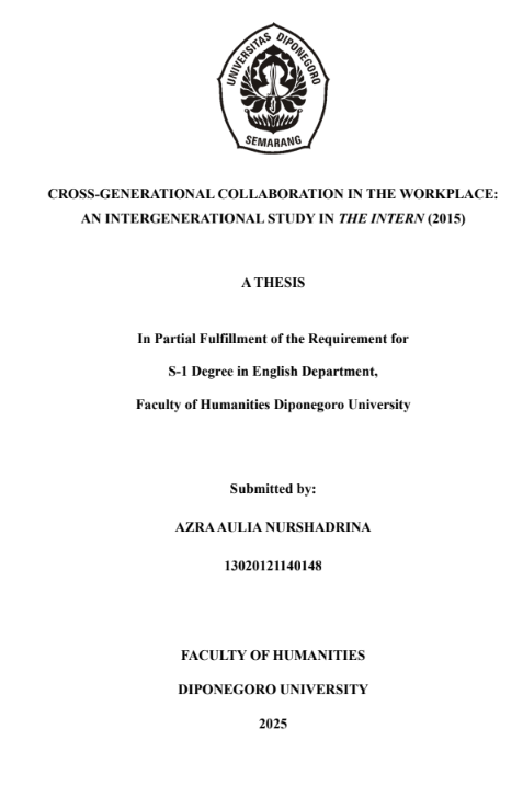 NURSHADRINA, AZRAAULIA (2025) Cross-Generational Collaboration in The Workplace: An Intergenerational Study in The Intern (2015). Undergraduate thesis, Diponegoro University.