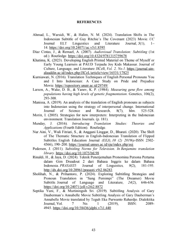 Rachmadhani, Latiefiana Kuswury (2026) PRONOUN SHIFT ANALYSIS IN ANNA’S DIALOGUE IN THE INDONESIAN SUBTITLE OF FROZEN (2013). Undergraduate thesis, Diponegoro University.